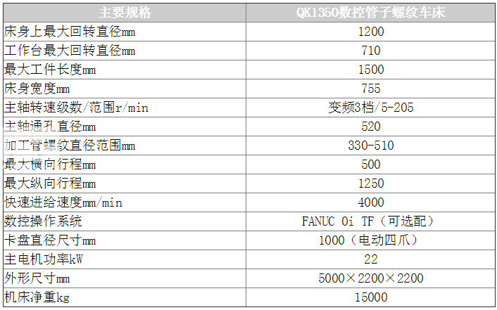 QK1350型數(shù)控管螺紋車床是針對石油、化工、冶金行業(yè)輸油管、鉆桿、套管的螺紋加工要求專業(yè)化設計制造。機床采用雙卡盤夾緊方式,數(shù)控系統(tǒng)自動控制,可******加工各種內(nèi)、外螺紋,并具有普通數(shù)控車床的功能。