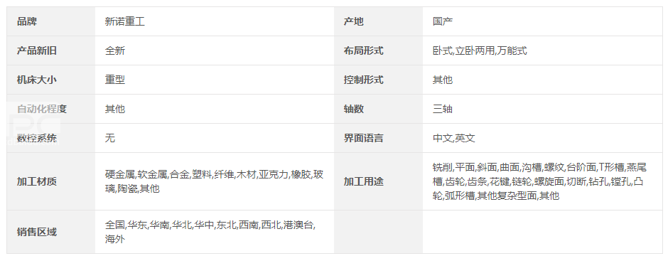 新諾精工產(chǎn)品系列:立式升降臺銑床|臥式升降臺銑床|萬能升降臺銑床|萬能回轉頭銑床|數(shù)控銑床|端面銑床|立式加工中心|臥式加工中心|龍門加工中心|