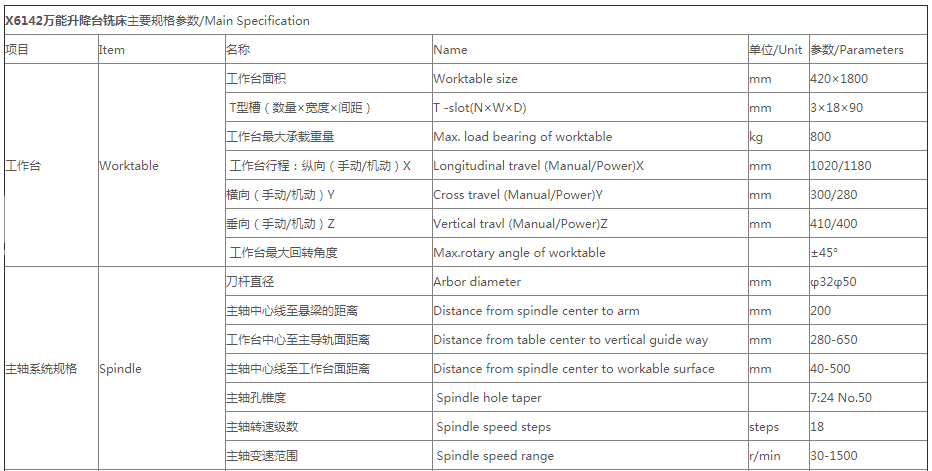 X6142******升降臺銑床是一種用途廣泛的通用機床,適宜于棒形、圓片、成形和端面銑刀,進行平面、溝槽和邊緣的加工。在本機床上安裝分度頭等附件后,還能銑切齒輪、鉸刀、螺旋槽、凸輪和鼓輪等工件,廣泛應用于機械加工各行業(yè)。