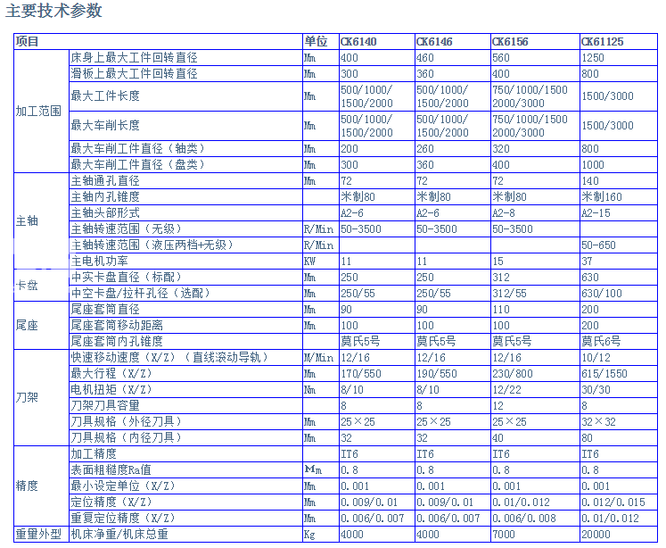 機(jī)床采用45°后置斜床身,操作、調(diào)整方便,受力狀態(tài)好,利于排屑。橫、縱向?qū)к墳楦呔戎剌d荷滾珠直線導(dǎo)軌,提高機(jī)床剛性,延長(zhǎng)機(jī)床使用壽命。機(jī)床主軸傳動(dòng)系統(tǒng)為寬調(diào)速交流伺服主軸電機(jī)通過(guò)多楔帶無(wú)級(jí)變速傳動(dòng)主軸,提高了傳動(dòng)的平穩(wěn)性,具有低速大扭矩和高速切削功能。X、Z軸傳動(dòng)均為彈性聯(lián)軸器直聯(lián)式,可有效地避免傳動(dòng)誤差,提高機(jī)床的穩(wěn)定性及響應(yīng)速度。機(jī)床配備臺(tái)灣六鑫8或12工位臥式液壓刀架,并配有適當(dāng)?shù)母骄?,因而機(jī)床具有較寬的工藝適應(yīng)性,縮短加工過(guò)程中的輔助時(shí)間。